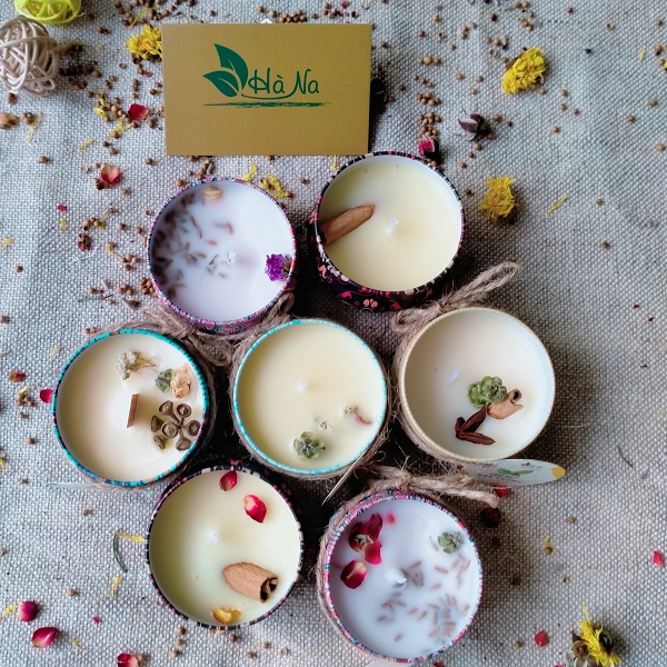'Nến thơm: 95gr được làm từ sáp ong/sáp đậu nành kết hợp tinh dầu tự nhiên tại trang trại nhà Na trang trí hoa khô phù hợp làm quà tặng